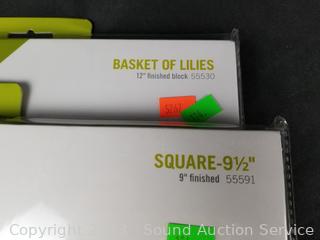 Lot Details: Basket of Lilies 12" finished, 10" x 24" cutting mat, Square 9-1/2" finished, 14" x 16" cutting mat.