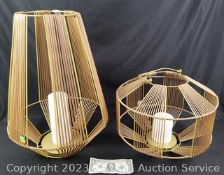 Lot Details: Smaller one has a handle, to hang, other has no handle. 11" H x 14" Dia. 20.5" x 14" Dia.