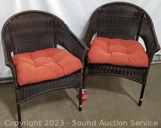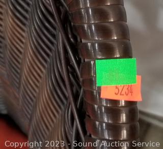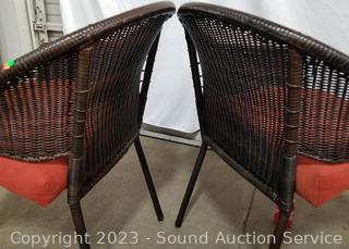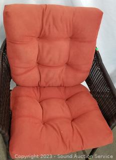 Lot Details: With orange seat cushions. 32" H x 24" W x 20" to seat. In excellent condition, don't see any issues.