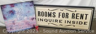 Lot Details: "It'll cost nothing to Dream" 24" x 24" & "Rooms for Rent" (some damage on one corner) 20" x 46".