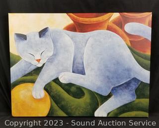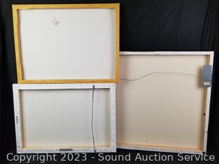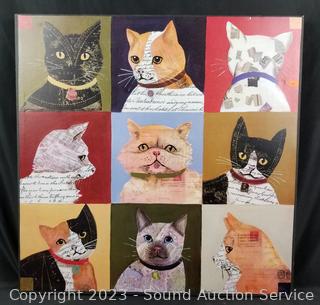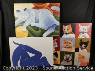 Lot Details: Women Silhouette 24" x 17", Cat Resting 23-3/4" x 17-2/4", Cat Collage 24-1/4" x 24-1/4" (small indent). Some scuffs.