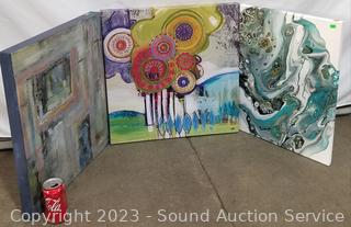 Lot #0052: 3pc Colorful Abstract Giclee Artwork