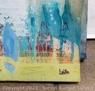 Lot Details: One signed Leila, 20" x 20". One titled "An Inner Glow" by A. Baller, 20" x 20". Other unmarked.