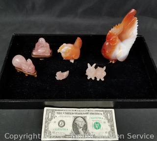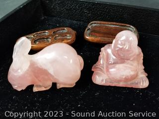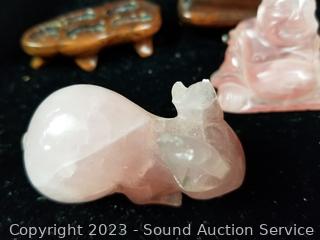 Lot #0213: 6 Pink Quartz Carved Stone Figures
