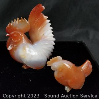 Lot Details: larger bunnies are damaged, larger rooster has broken piece on it's tail, smaller rooster has some chips on feet. Approx. 1.25" to 5.75" tall.