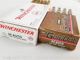 Lot #0193: 70ct Winchester & Speer 32 Auto Ammunition