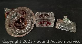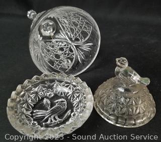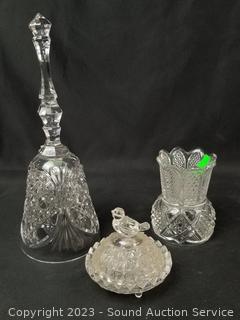 Lot Details: Candleholder, trinket boxes, bells (one missing the dongle/ringer), toothpick holder, dish. Don't see any issues.