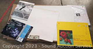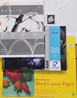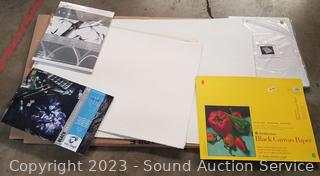 Lot Details: 4 large canvases 40" x 25.5" 8 small canvases 30.5" x 22.25", 20pk 11.8" x 15.7", 12pk black sheets 11.7" x 16.5", 12" x 16" art board, 10pk 16" x 20"black sheets.