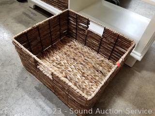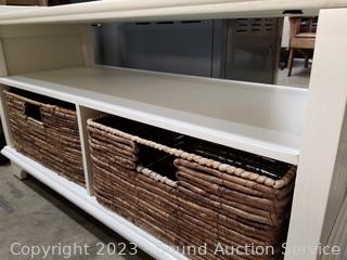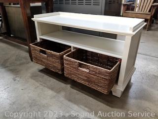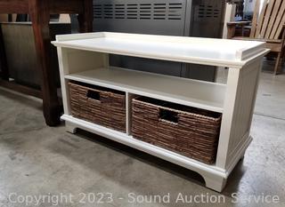 Lot #0020: Ivory Entryway Bench w/2 Woven Bins