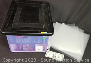 Lot Details: Refer to photos for titles, genre, condition, etc. Tote with lid included 10.5" x 14" x 17.5".