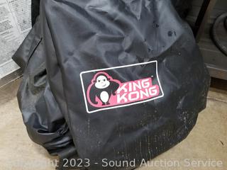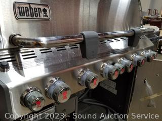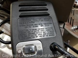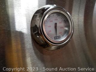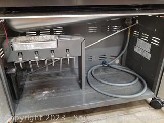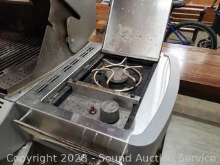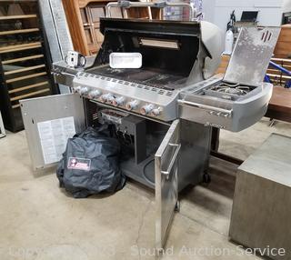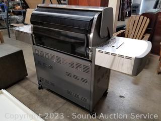 Lot Details: Comes with rotisserie motor, no rod for it, and cover. Could use a thorough cleaning. Does not come with propane tank. 42" H x 72" W x 24" D.