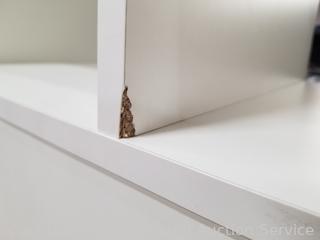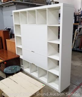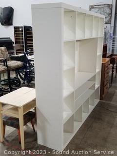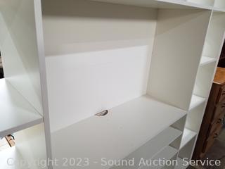 Lot Details: A few damage spots in laminate. Particle board construction. 73" H x 62.5" W x 15.25" D.