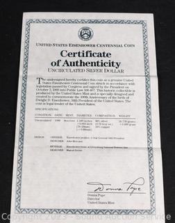 Lot #0213: 1990 US Eisenhower Centennial Silver Dollar