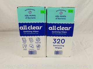 Lot #0187c: (2) 320pk All Clear Household Sanitizing Wipes