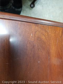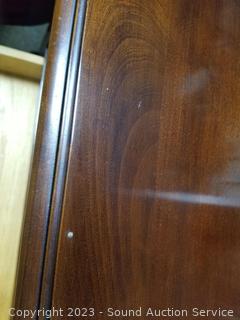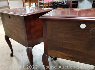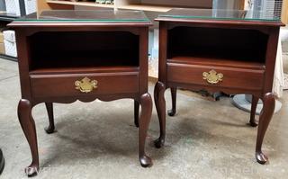 Lot Details: Matches dresser in the previous lot. Both with protective glass tops. Solid wood construction, dovetail joinery, cabriole leg. 26' H x 21.5" W x 16" D. A few minor scuffs, overall excellent condition.