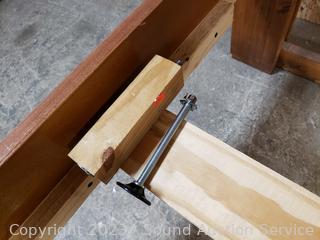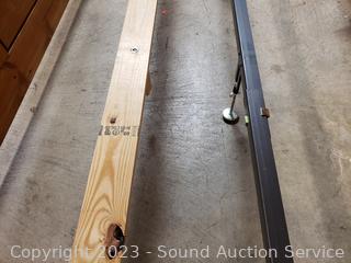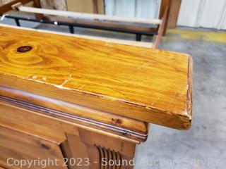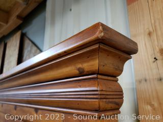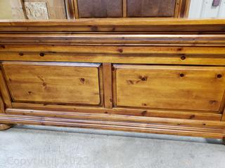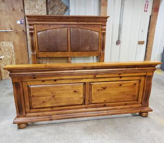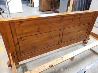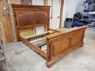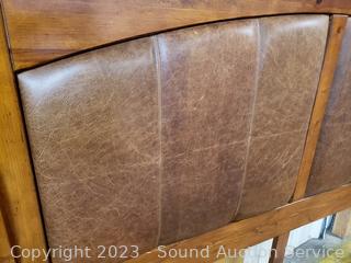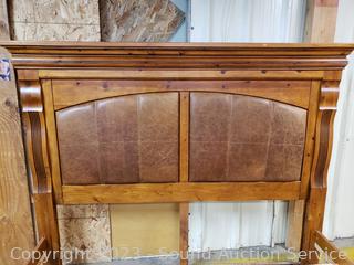 Lot #0045c: Beautiful King/Cal King Pine & Leather Bed Frame