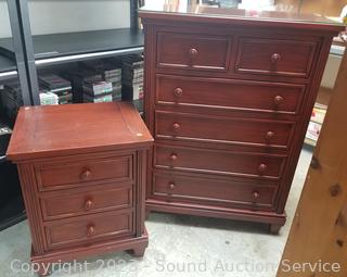 Lot #0069: Cherry Stained Finish Dresser w/Nightstand