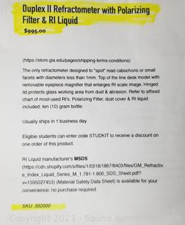 Lot #0010c: GIA Duplex II Refractometer w/Filter & RL Liquid