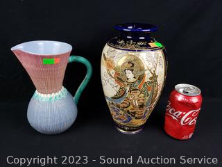 Lot #0228: Hand Painted Asian Vase & Italian Pitcher