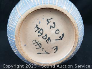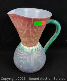 Lot Details: Vase is beautifully painted with high relief. Handcrafted Italian pitcher. 8" to 10" tall, 4.5" to 5,.5" dia. Don't see any issues.
