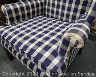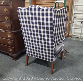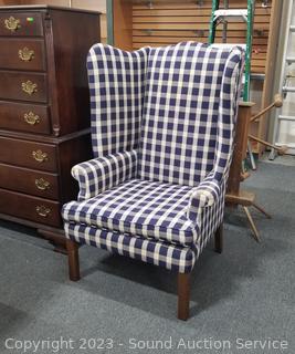 Lot #0062: Maynard House Blue Plaid Wingback Chair