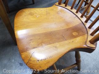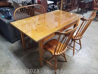 Lot #0003c: Nice Pine Dining Table w/2 Colonial Chairs & Bench