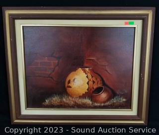 Lot #0036: Original Signed Native Pottery Oil Painting