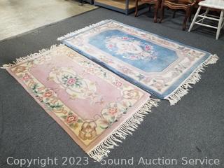 Lot #0041: Pink & Blue Wool Accent Rugs