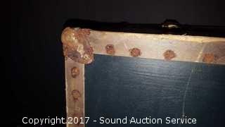 Came out of Steppenwolf's Goldy McJohn's estate. Part of Goldy McJohn's wardrobe. Covered in travel and rock band stickers. Locked, unknown contents, feels empty, no key. Didn't want to break the lock to get it open. Approx. 13" tall, 36" wide and 20" deep. SHIPPING ALERT: Shipping is available, buyer is responsible for making arrangements on larger items for shipping and or pickup!