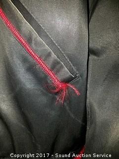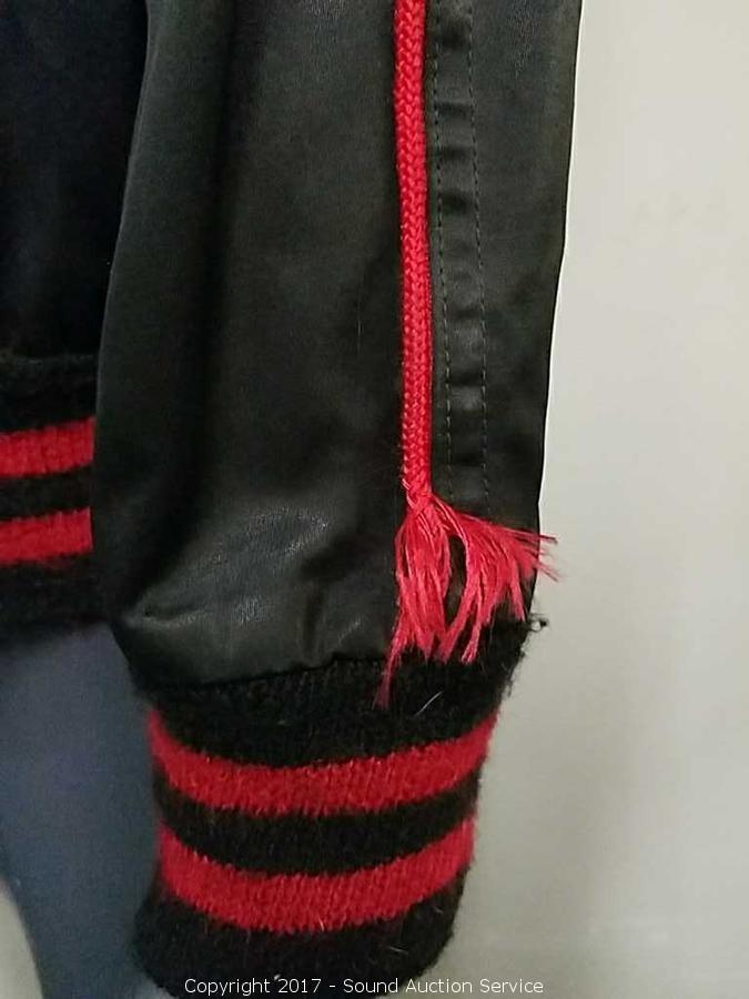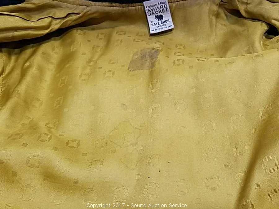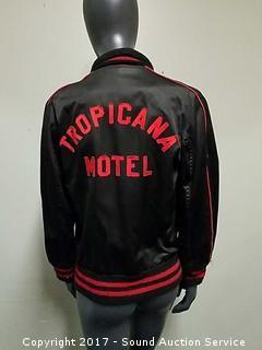 Came out of Steppenwolf's Goldy McJohn's estate. Part of Goldy McJohn's wardrobe. Tropicana Motel lettering on the back. Some stains on the lining and a ring around the collar, some fraying on the red cordage. Made by Kaye Bros. Approx. size small. Approx. 16" shoulders, 25.5" long. SHIPPING ALERT: Shipping is available, buyer is responsible for making arrangements on larger items for shipping and or pickup!