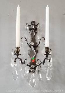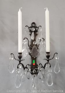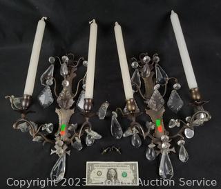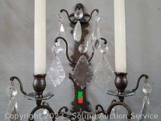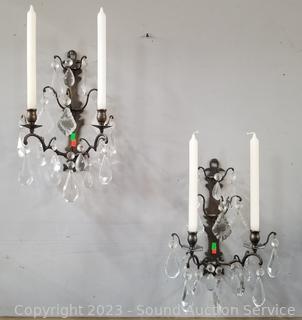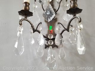 Lot #0099:     (2) 2-Light Crystal Prism Candle Sconces