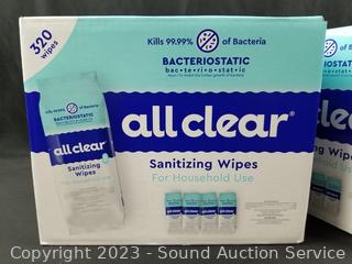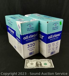 Lot #0123d: (2) 320pk All Clear Household Sanitizing Wipes