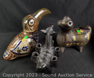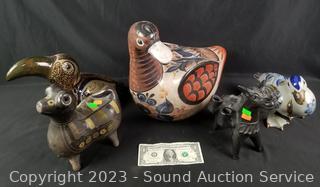 Lot #0062: 5pc Mexican Pottery Animal Sculptures