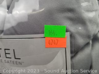 Lot Details: Gray color. 1 flat, (2) 38" x 84" x 16" split cal king fitted sheets, 4 pillow cases 21" x 42". 100% cotton. Has been washed, has a detergent smell, otherwise don't see any issues.