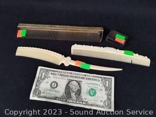 Lot #0132: 3 Celluloid Combs & Sterling Matchbox