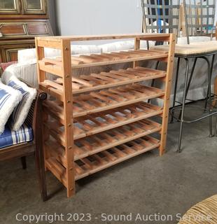 Lot #0010: 6 Shelf Natural Wood Finish Wine Bottle Rack