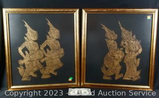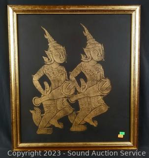 Lot #0066: Pair of East Asian Musician Temple Rubbing Artwork