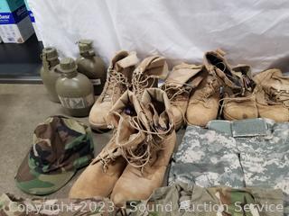 Lot #0236: Various Military Fatigues, Accessories & Boots