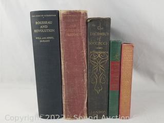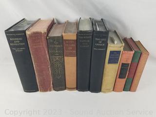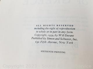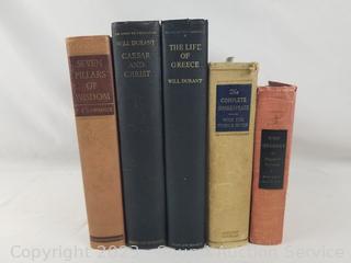 Lot Details: c.1914 "Crime & Punishment", c.1923 "Cyrano de Bergerac", c.1935 "Our Oriental Heritage", "The Decameron of Boccaccio", c.1967 Rousseau & Revolution", c.1930 "Don Quixote", "The Complete Works of William Shakespeare", c.1939 "The Life of Greece", c.1944 "Caesar & Christ", c.1938 "Seven Pillars of Wisdom". Refer to photos for more info.