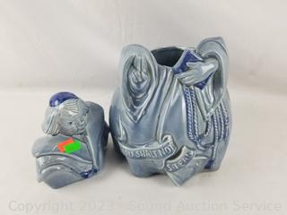 Lot #0266: 1940's Redwing Pottery Blue Friar Monk Cookie Jar