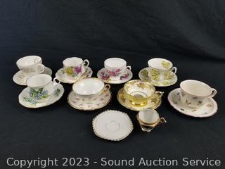 Lot Details:  Royal Vale England, Stanley England, Royal  Albert England, Royal Albert Primrose,  Villeroy & Boch (has a chip), Paragon  England, Royal Albert Chrysanthemum, Duchess Caprice & other (has a chip). Some wear to  finish, don't see any major issues other than  mentioned.