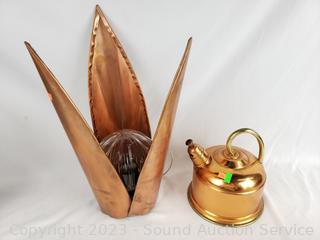 Lot #0166: Copper Lamp, Copper? Pot, Copper Teapot & More