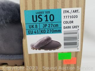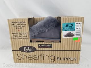 Lot #0150: Kirkland Ladies Shearling Dark Gray Slippers S:10