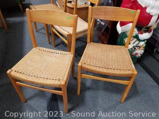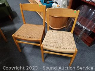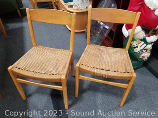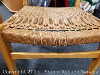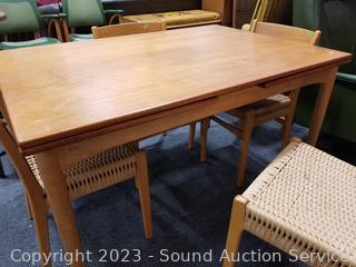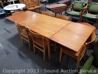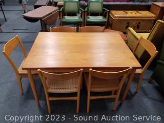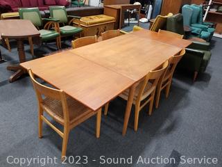 Lot #0021: MCM Teak Dining Table w/6 Woven Seat Chairs