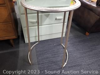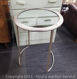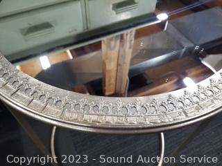 Lot #0039: Mirrored Decorated Fleur De Lis Metal Frame Table