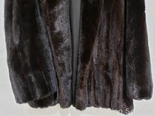 Lot Details: Monogramed on the Inside "Marguerite E. Dolak". Seam along inside collar has come free. Don't see a size, approx. S: large. 27" L, 16" wide shoulders, 22" outer arm, 15" inner arm. In great condition, don't see any shedding.