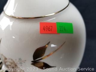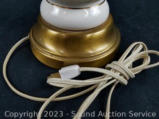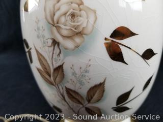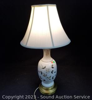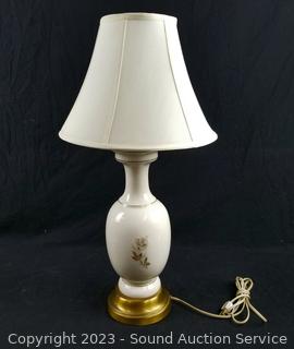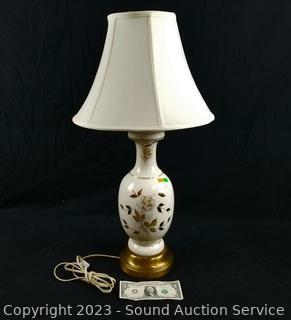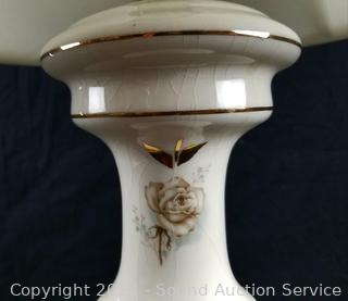 Lot #0224: Porcelain White Rose Gold Leaf Table Lamp - Works