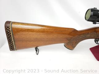 Lot Details: Serial 7013196. Comes with small magazine & Tasco Pronghorn scope. Some light wear from age, use. Appears to be in firing condition. 42.5" long, 21.5" barrel. Unsure of the power on scope. Preview at Sound Auction Service. Picked up at South Sound Guns Lacey WA. In accordance with U.S. law, this lot must either be picked up at South Sound Guns Lacey, Washington or shipped to a U.S. licensed firearms dealer (FFL) of the buyer's designation. Handguns will be shipped via USPS Priority Mail; shotguns & rifles will be shipped according to South Sound Guns standards and in accordance with U.S. laws. All shipping and handling charges will be paid by the buyer and billed by South Sound Guns. All transfer fees will be paid by the buyer at South Sound Guns at the price of $20 per item. Any and all waiting periods will be determined by South Sound Guns. Buyers must present copy of Sound Auction paid invoice.