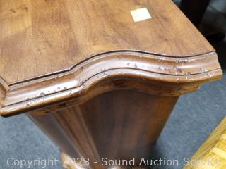 Lot Details: Appears to be solid wood construction. Some minor scuffs, don't see any major issues. 29" H x 42" W x 12" D.
