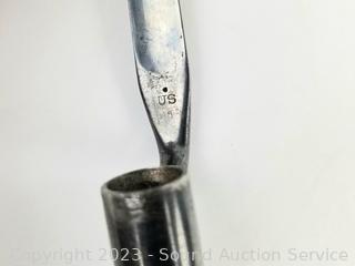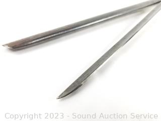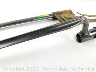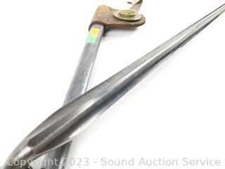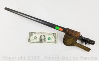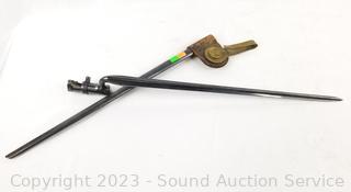 Lot Details: Unsure what it is for exactly, best guess, US Model 1873 Springfield Trapdoor Bayonet, 17" triangular blade, 21" long overall. Marked US, don't see a model number, again just my best guess.